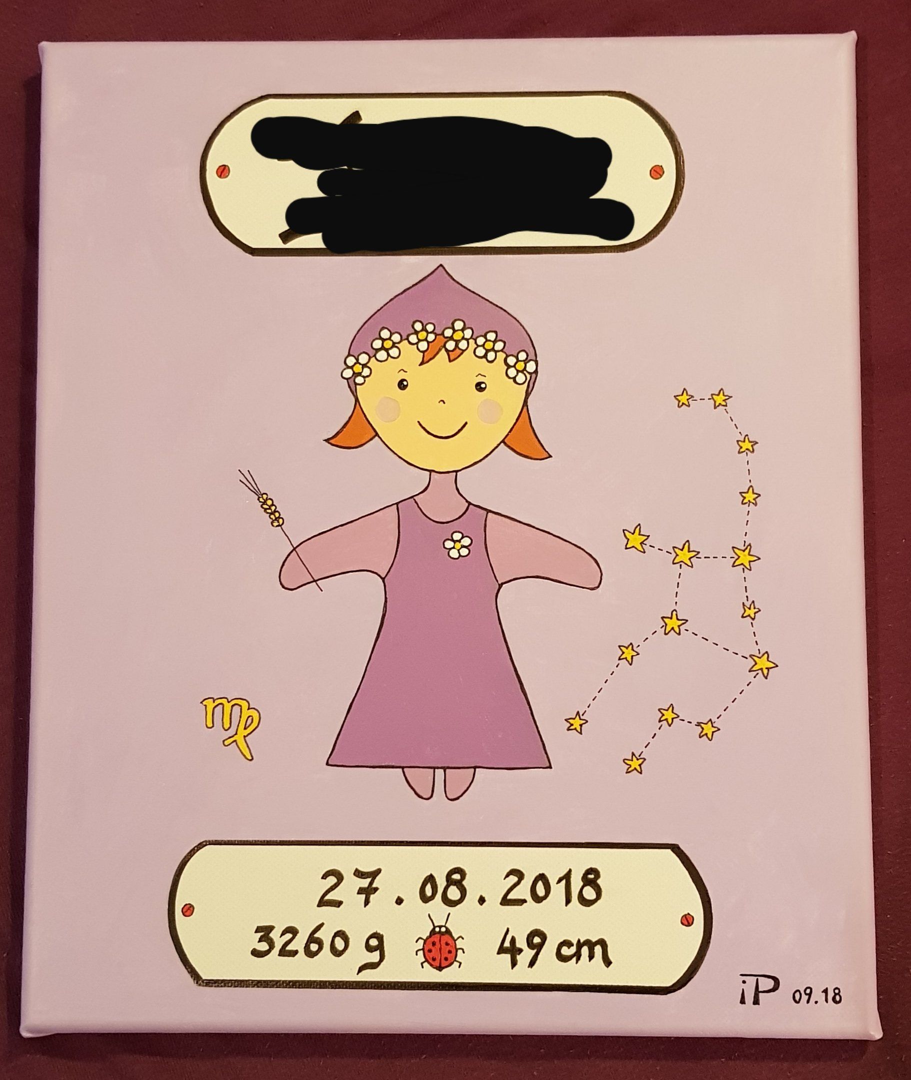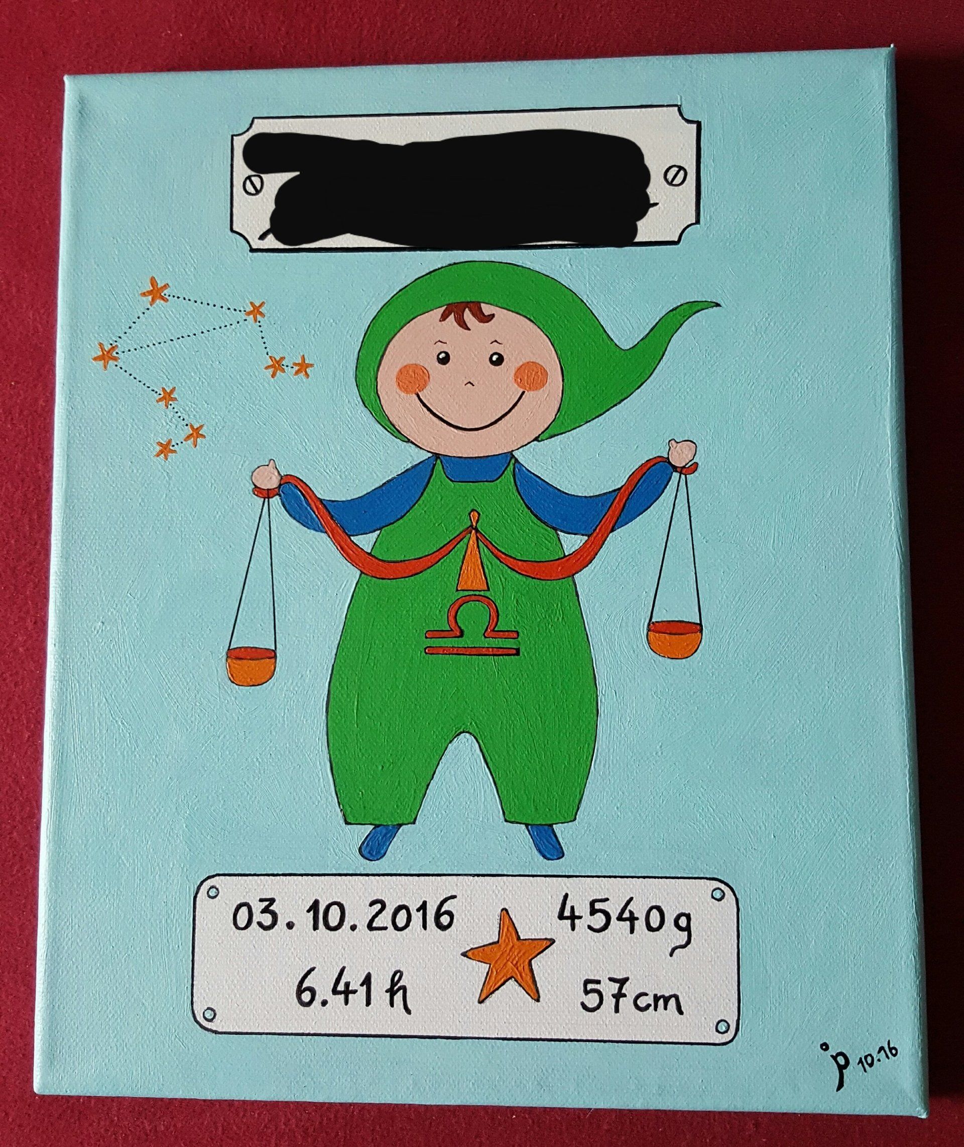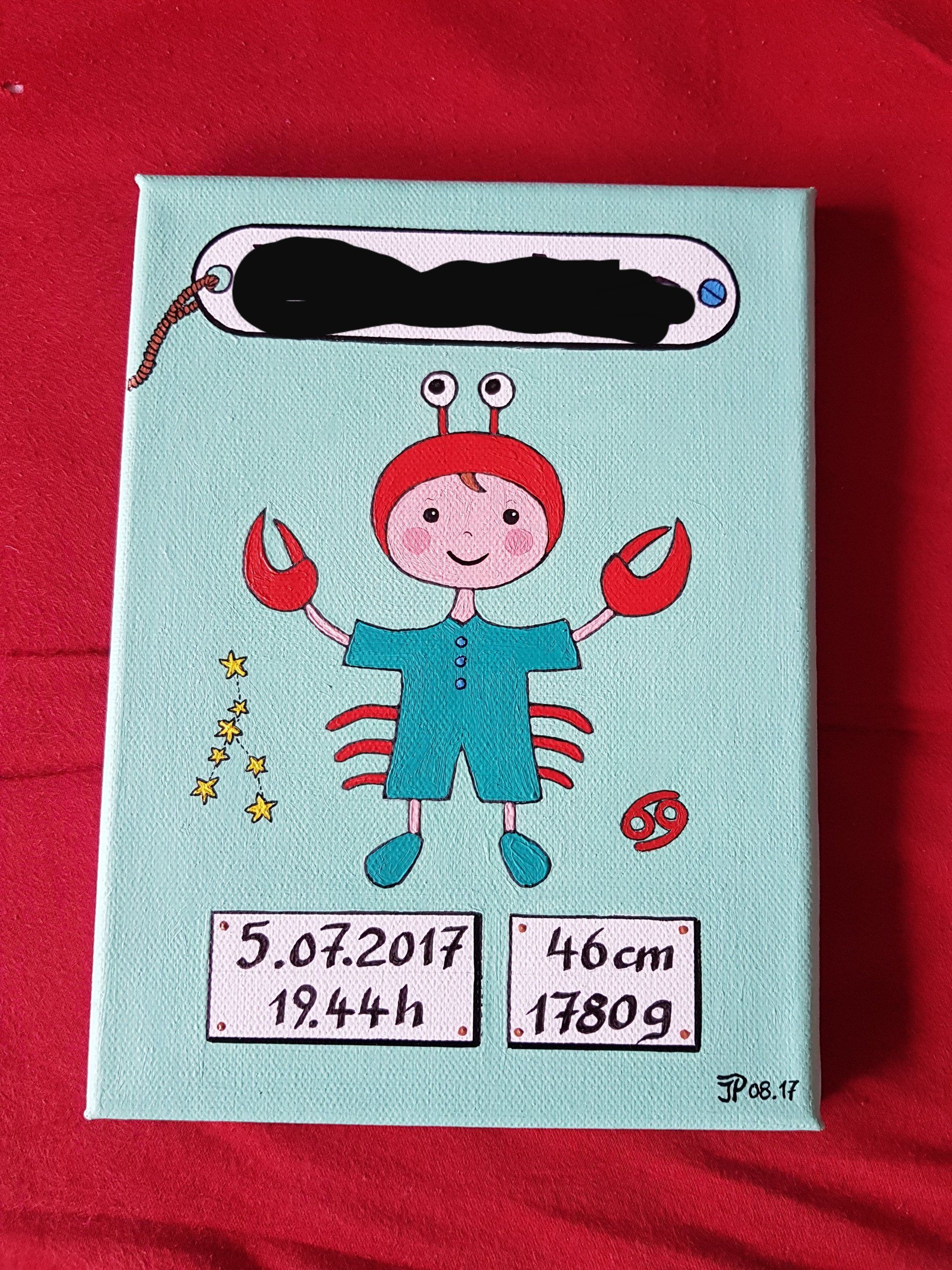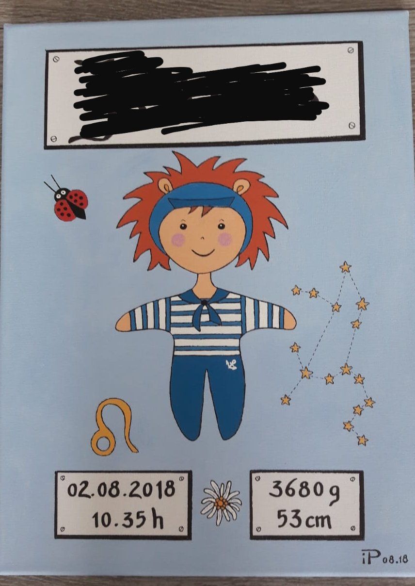 Passend zum Geburtsdatum erstelltes Acrylbild.