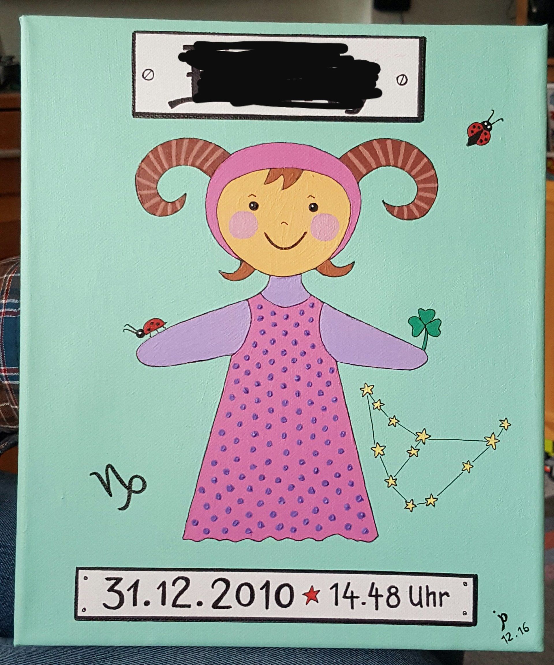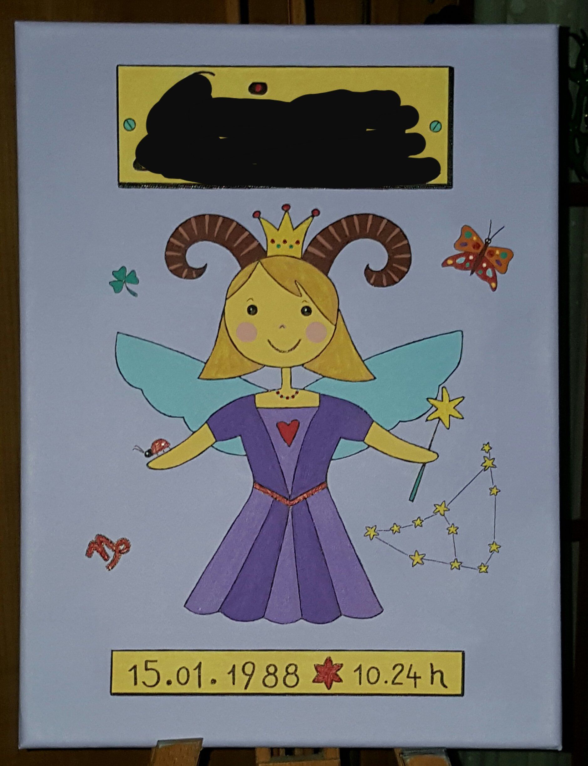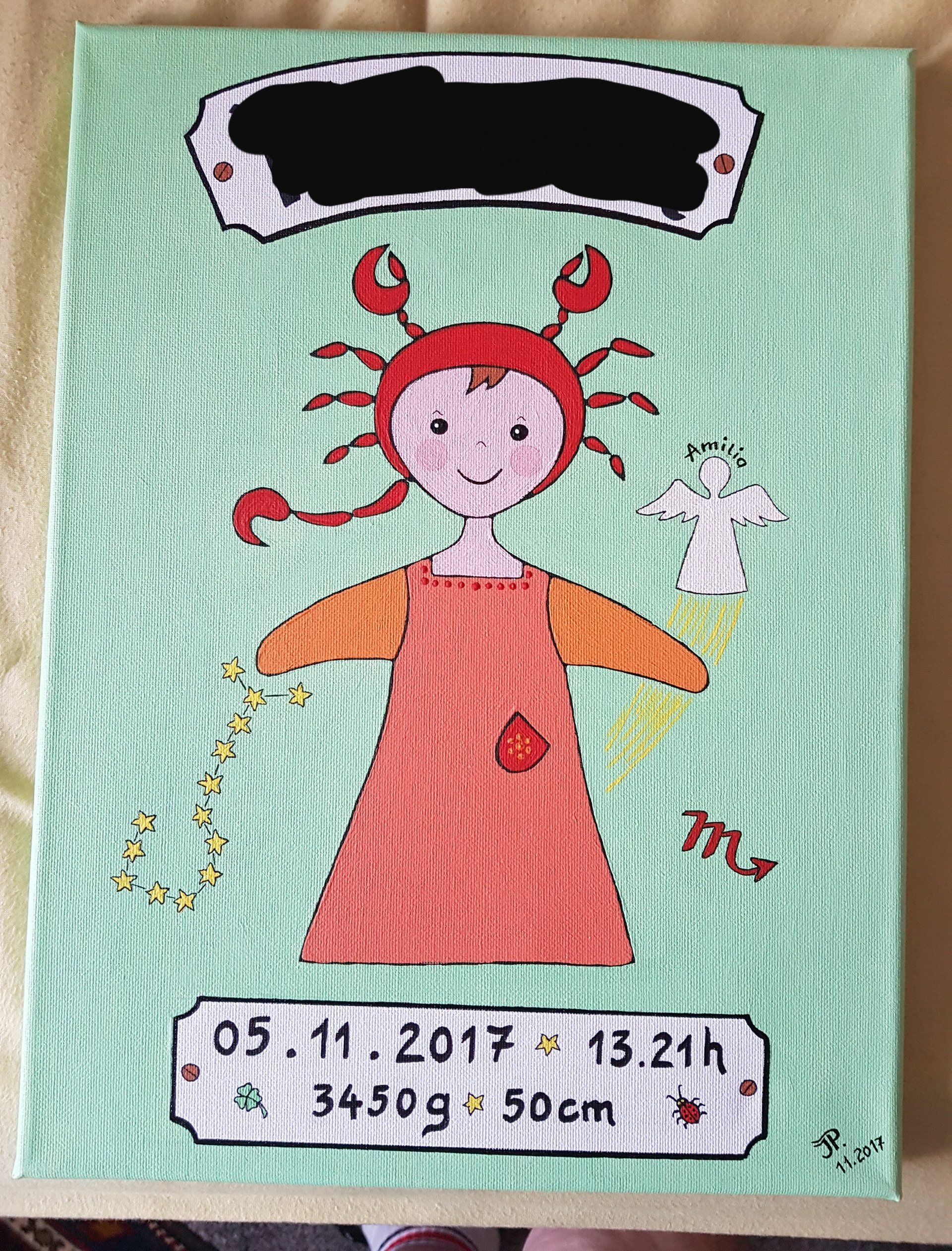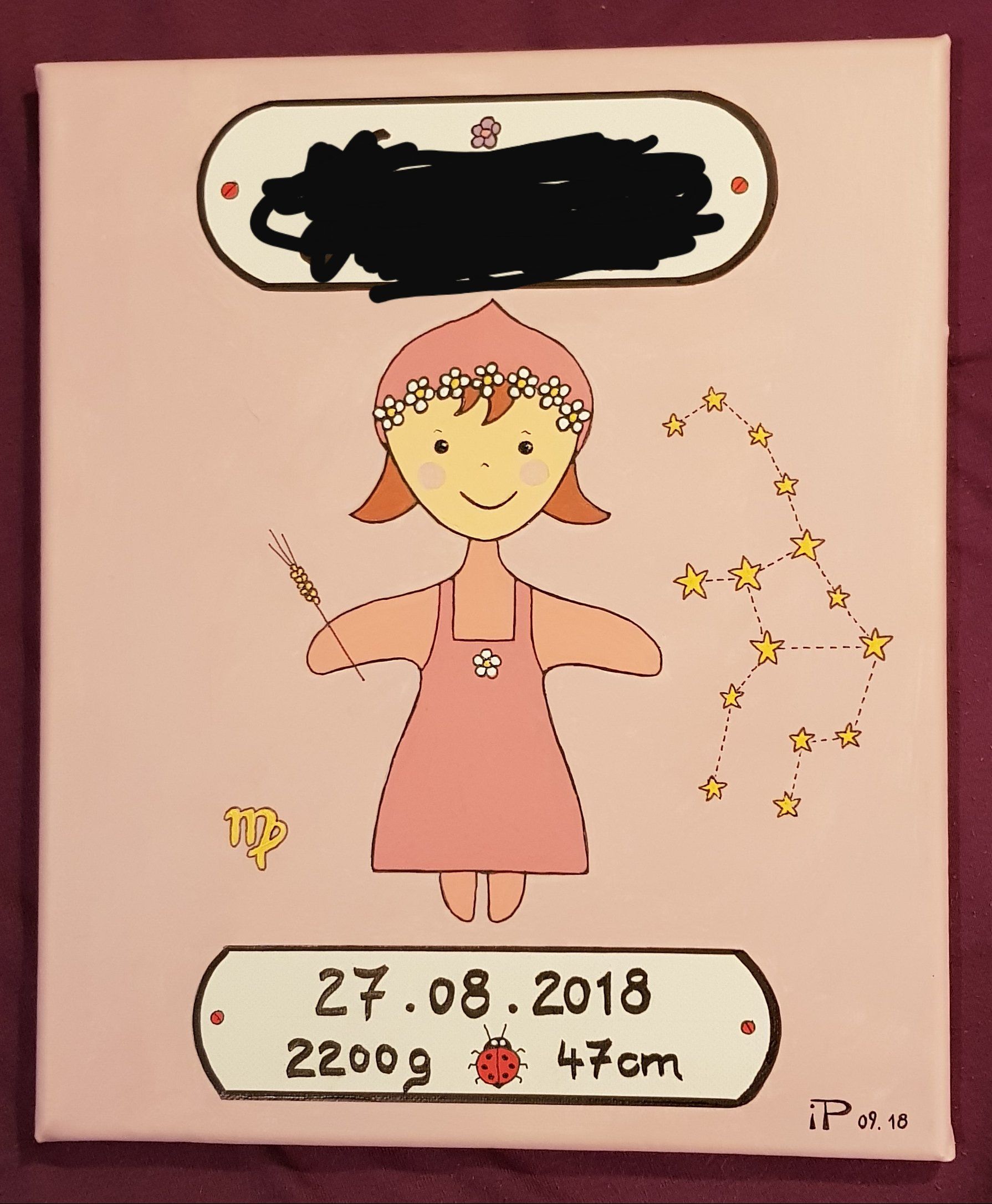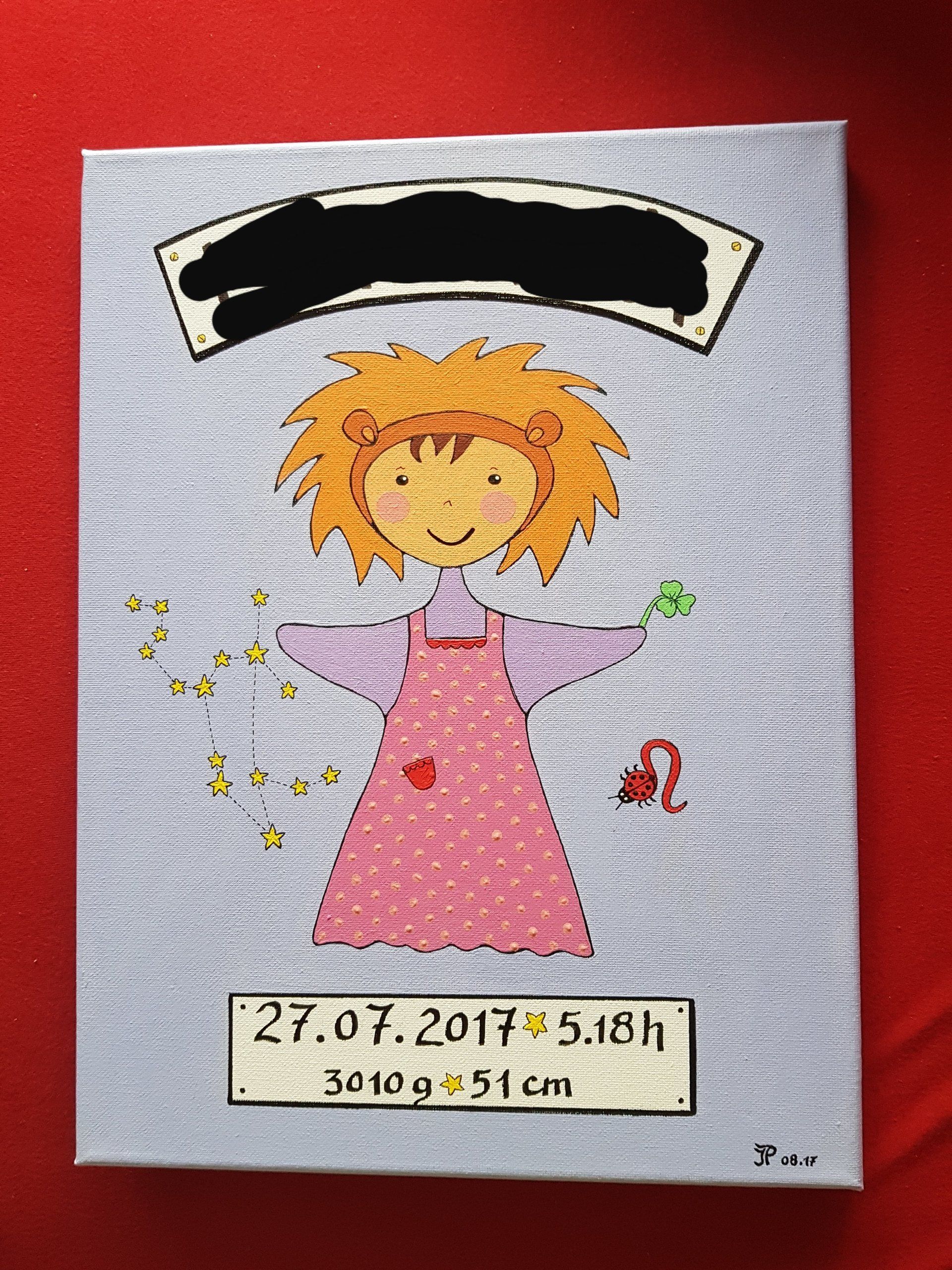 Passend zum Geburtsdatum erstelltes Acrylbild.
