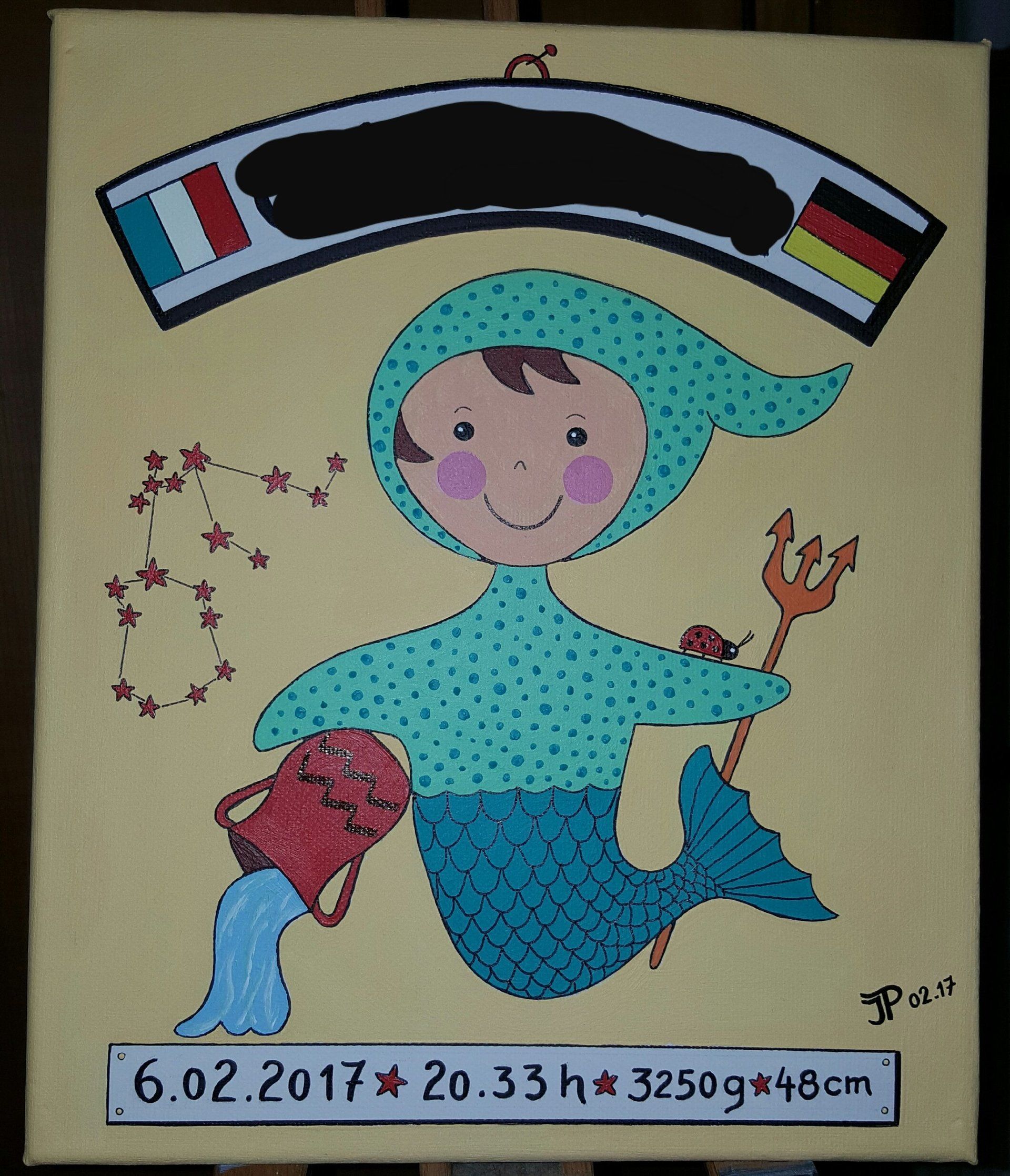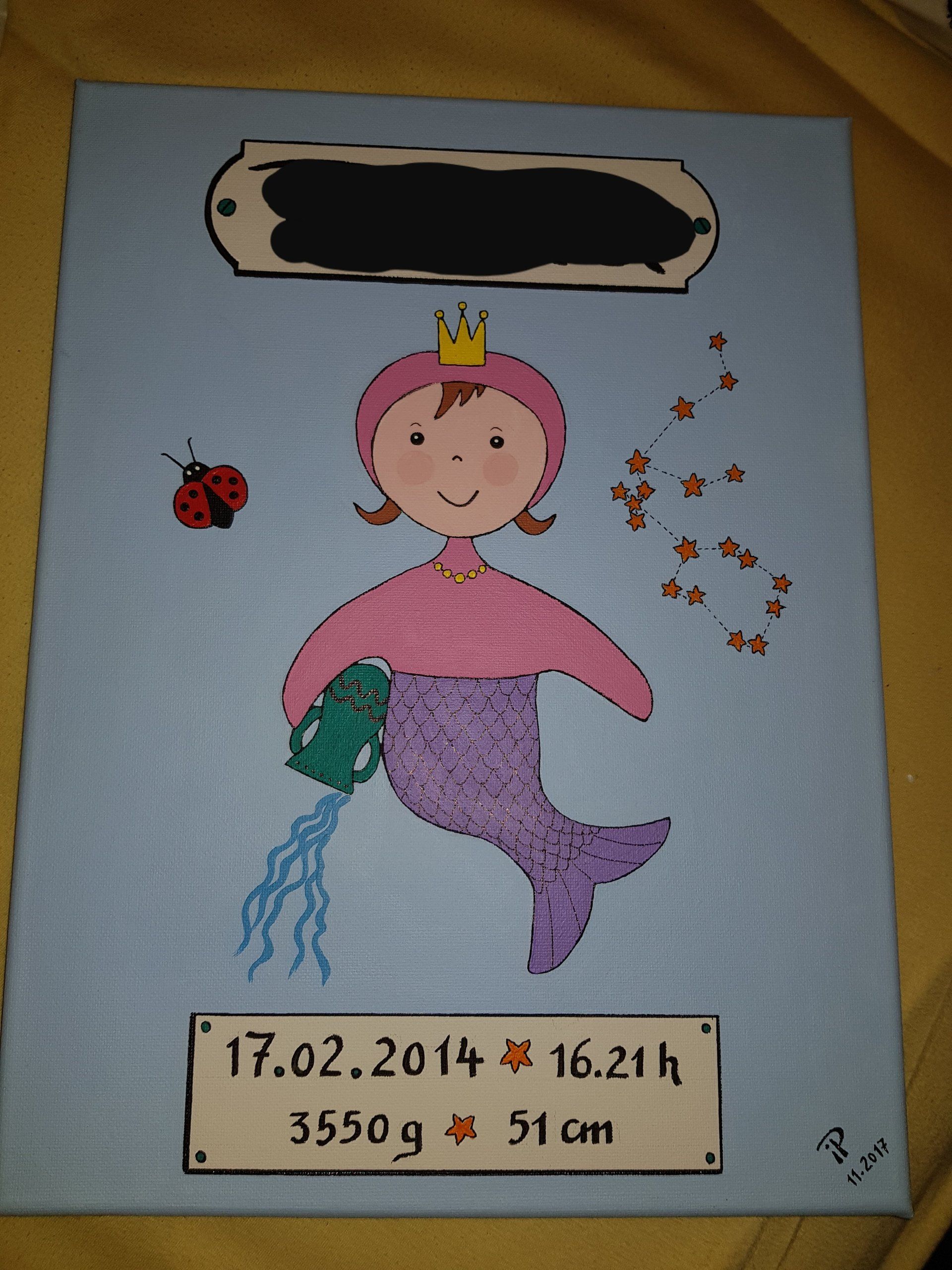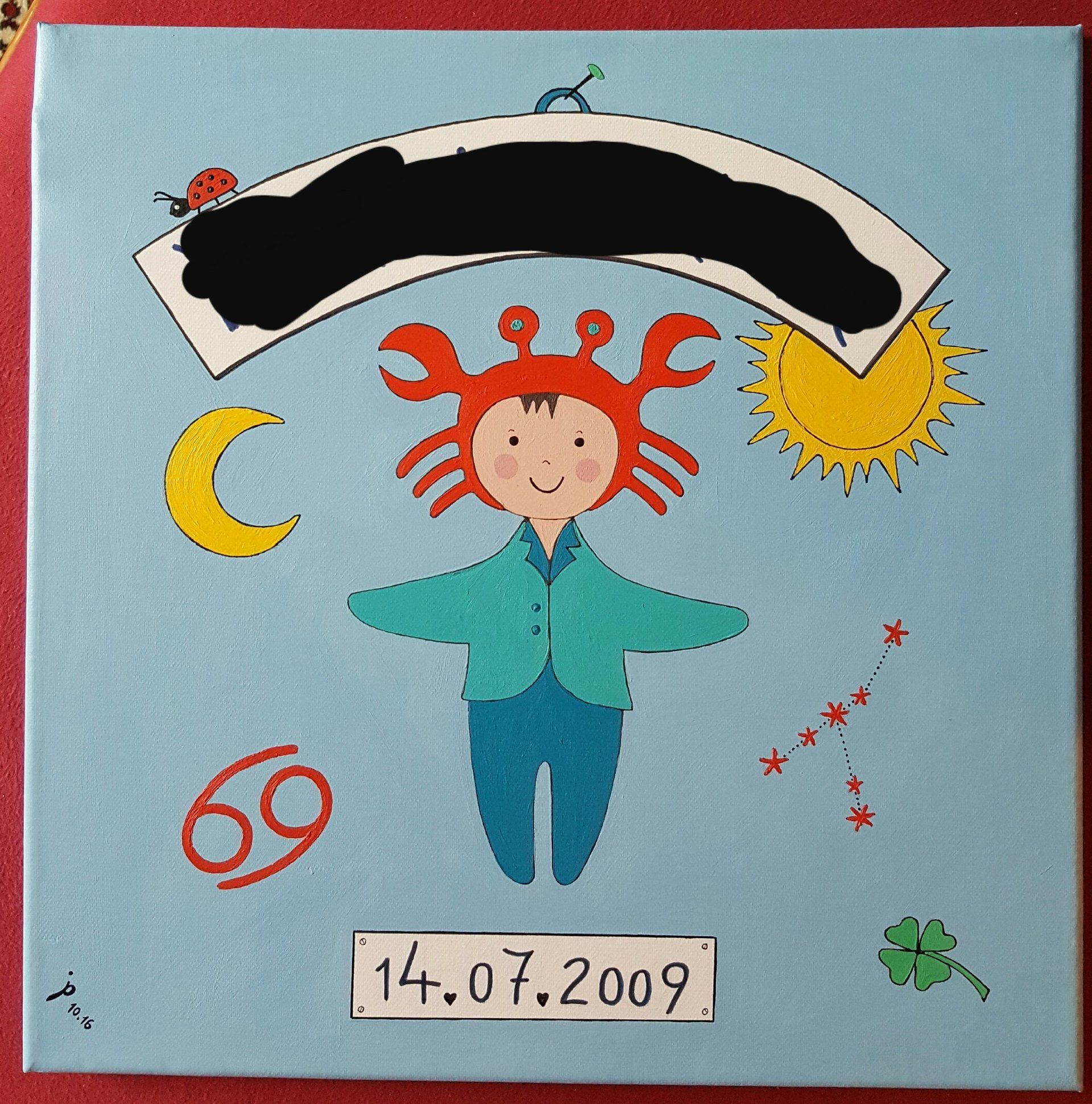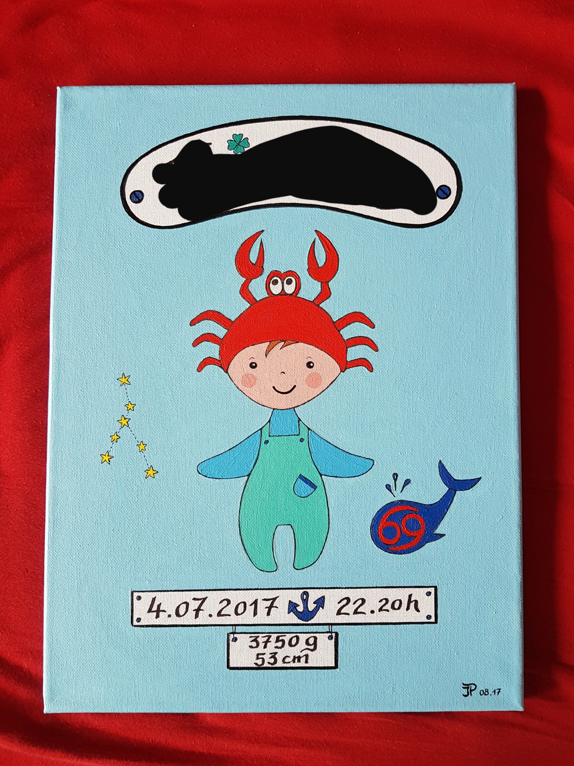 Passend zum Geburtsdatum erstelltes Acrylbild.